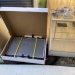ハイエースでフロントガラス交換、お客様の事務所に出張修理、今回は信頼の純正ガラスにて。