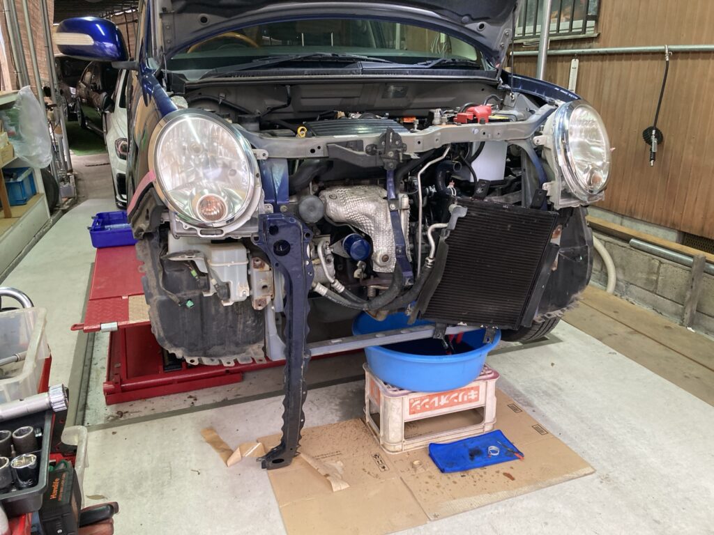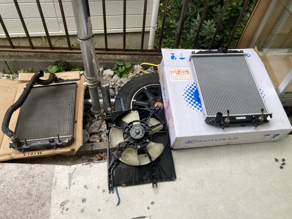 ミラジーノ年式なりでだいぶ追加整備…ラジエターパンク、余談ですがうちの代車はジーノ1000という希少車です、
