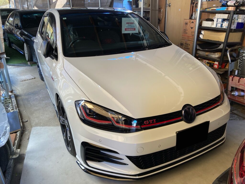 ゴルフ7後期GTI 限定車TCRがなぜか当社に3台あります、白はもうすぐ掲載予定3万キロ台でサブコンでちょっと速くなってます。ローダウンサス、細かいとこカスタムされた粋な一台です、この車に詳しい方見れば分かるはずです